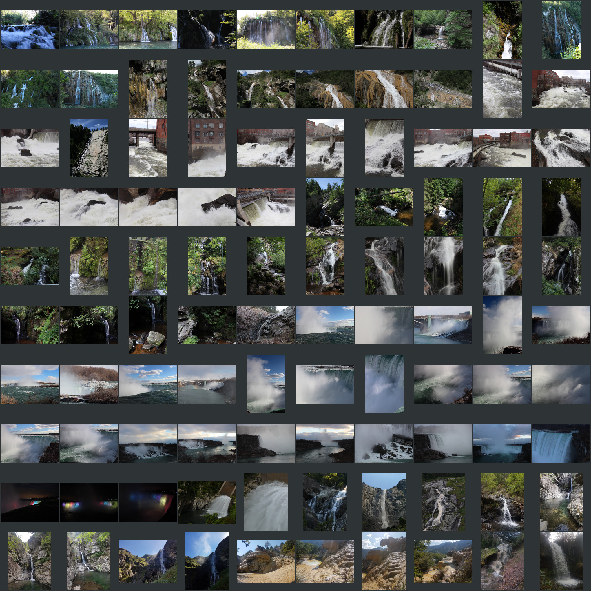 200 waterfall photos, including Niagara Falls. Can be used for personal and commercial projects. Sort photos by date to group images taken in the same location.